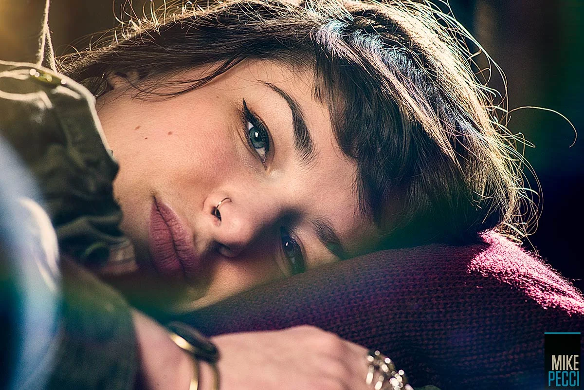 For these shots, I used the two Lumo’s. One with a long snoot focused on Gina’s face, the other was being shot through two layers of diffusion and an umbrella to give the shadows some detail. The sun was going down behind the curtain and blinds giving awesome texture to the fabric but was quickly disappearing. I had to get the shots fast!